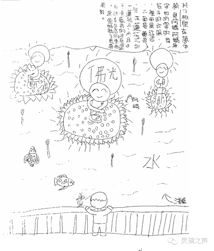 母亲往生后数日,于4月21日早晨,国小四年级的侄子江柏升告诉末学,他昨夜梦见了阿嬷(祖母)。下图是江柏升叙述与画下的梦境图像(下页)。